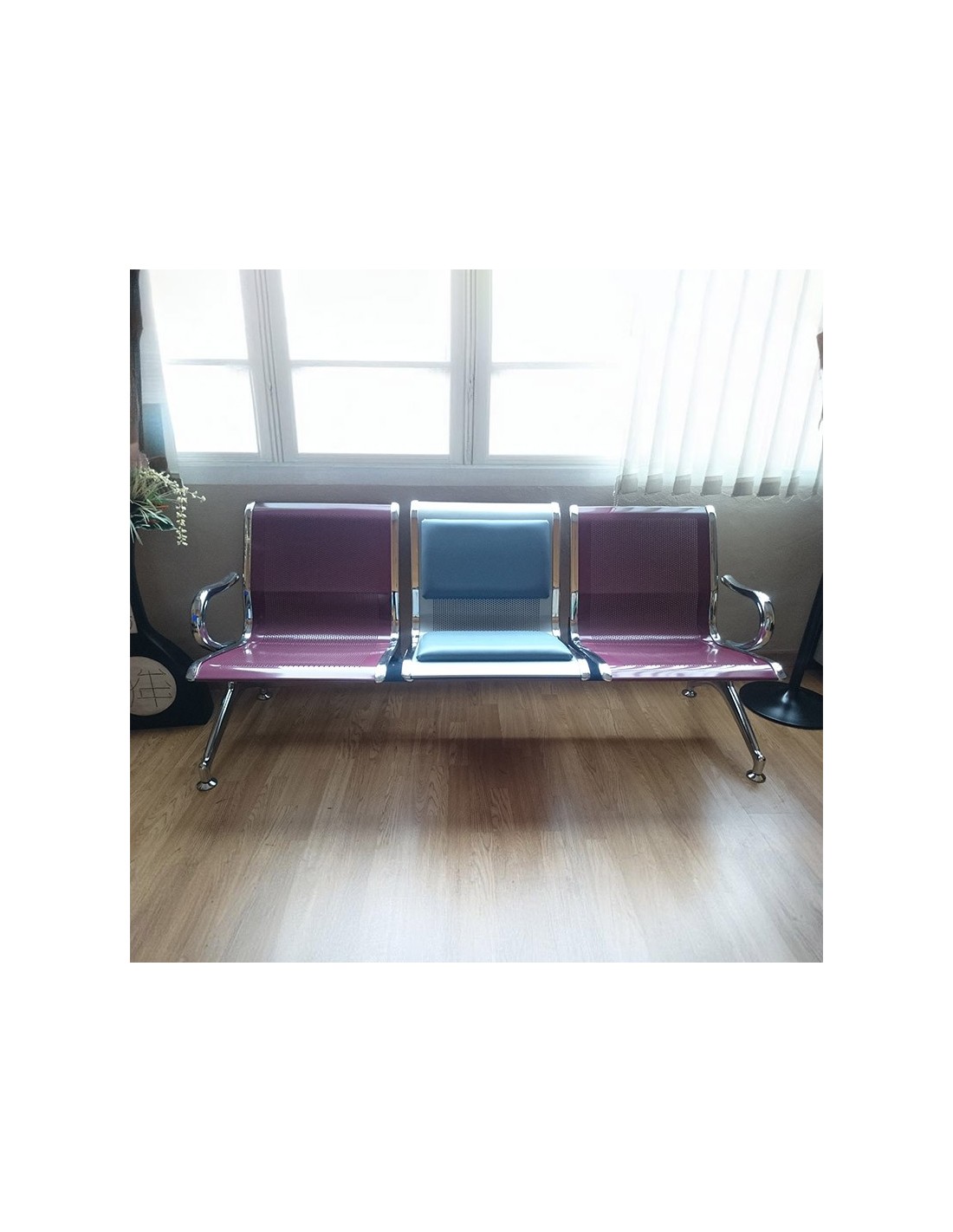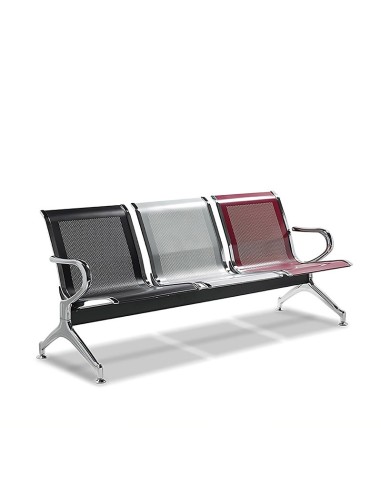 Perfecta para aeropuertos, hospitales y áreas de recepción corporativas, esta bancada destaca por su acabado cromado y su funcionalidad.