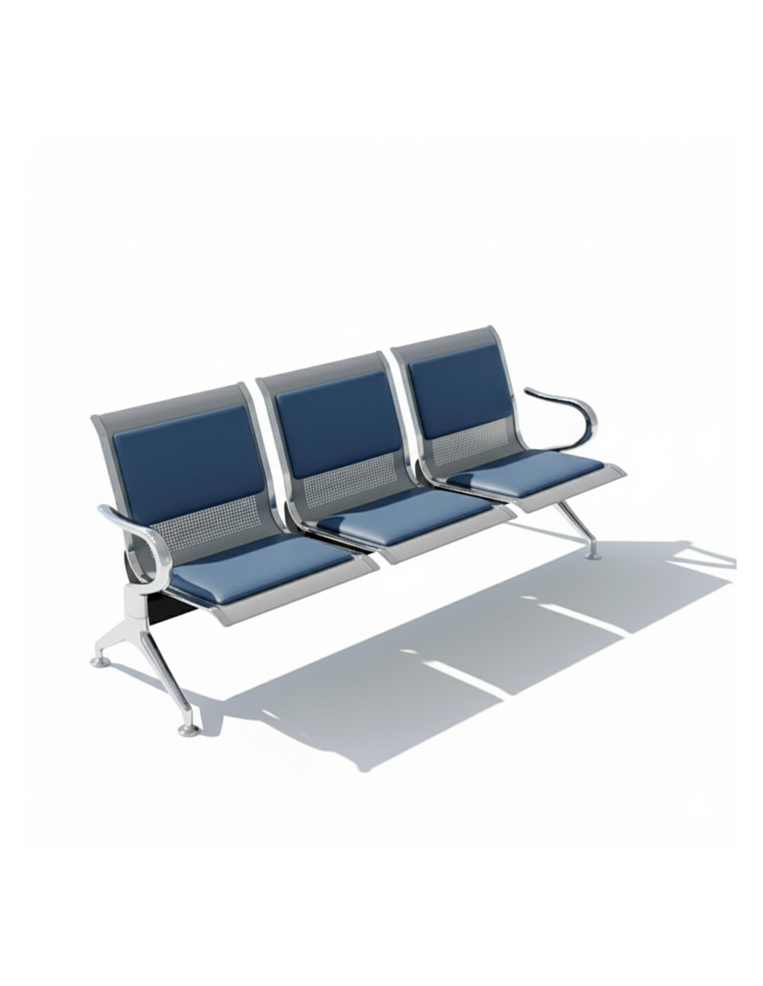 Perfecta para aeropuertos, hospitales y áreas de recepción corporativas, esta bancada destaca por su acabado cromado y su funcionalidad.