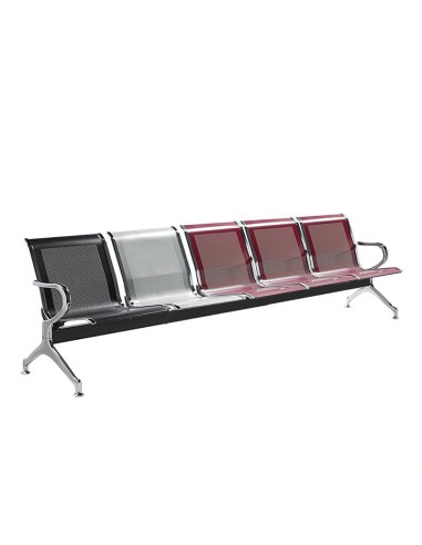 Perfecta para aeropuertos, hospitales y áreas de recepción corporativas, esta bancada se distingue por su acabado cromado y su funcionalidad.