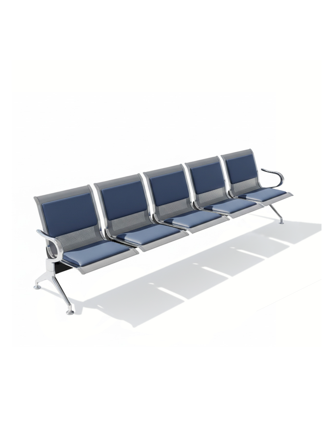 Perfecta para aeropuertos, hospitales y áreas de recepción corporativas, esta bancada se distingue por su acabado cromado y su funcionalidad.