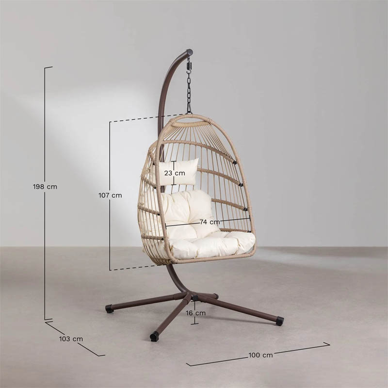 Haz que el verano dure todo el año con la butaca Colgante Moonwalker, una pieza que combina comodidad, diseño y elegancia natural. Perfecto para interiores cálidos y relajados, este sillón colgante con base te invita a desconectar, leer o simplemente dejarte mecer en tu rincón favorito del hogar.