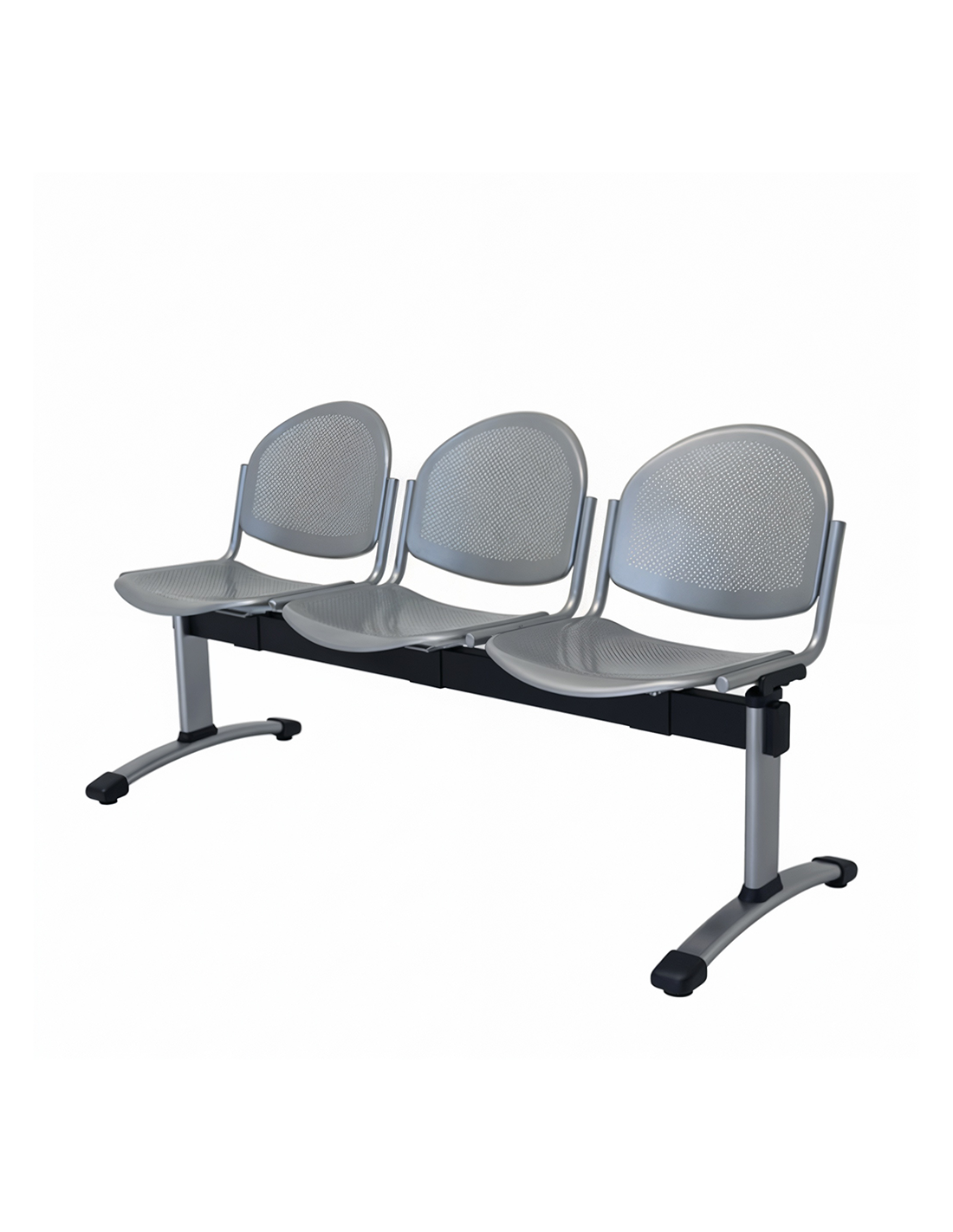 La Bancada Koma 3 Plazas combina robustez, ventilación y estética técnica gracias a su asiento y respaldo de chapa multiperforada en color gris metalizado. Es una opción idónea para salas de espera, centros públicos y zonas de tránsito frecuente.