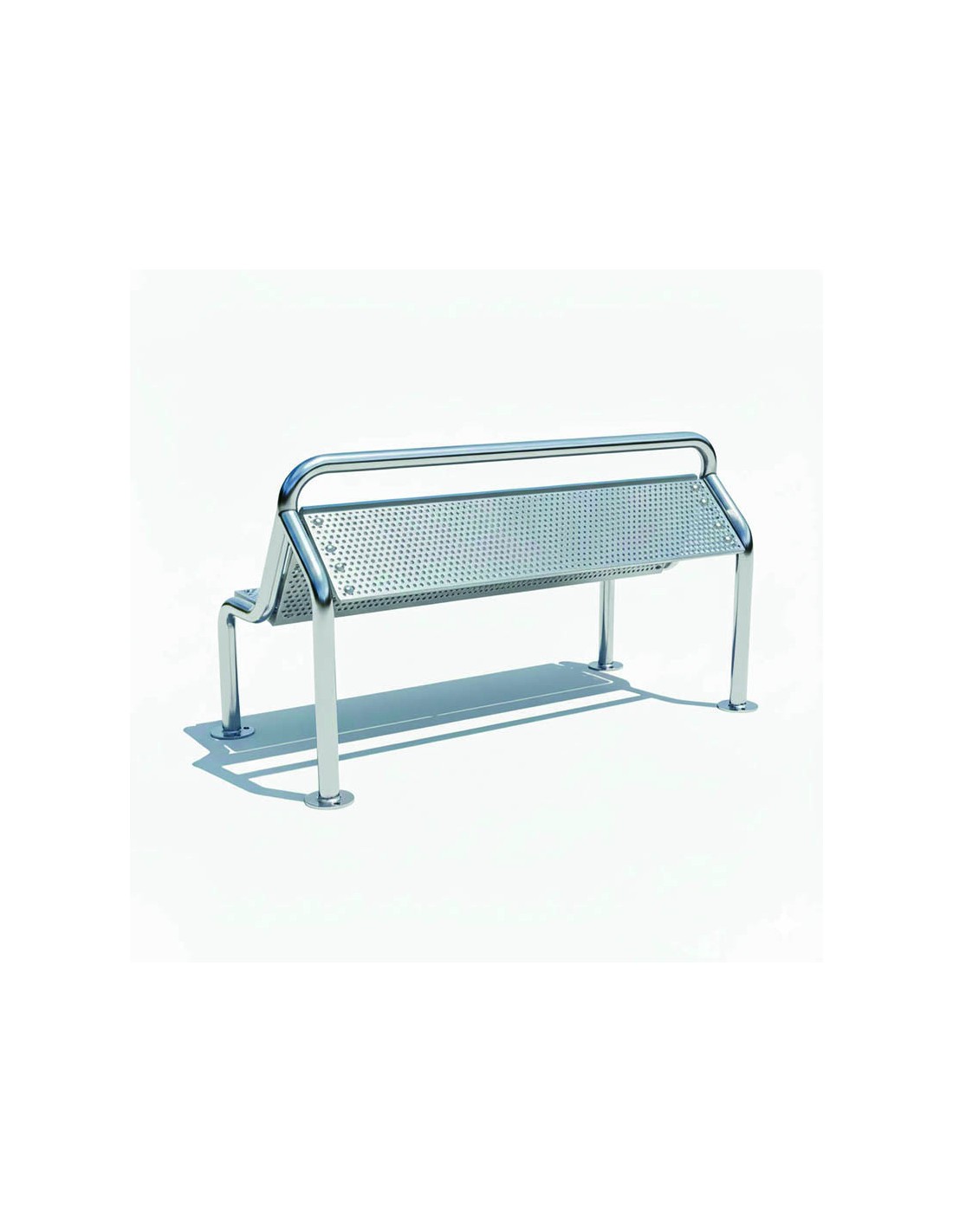 Modelo en acero inoxidable ideal para uso intensivo en espacios urbanos y zonas públicas de alta rotación. Combinación de banco tradicional por un lado y apoyo isquiático por el lado posterior.