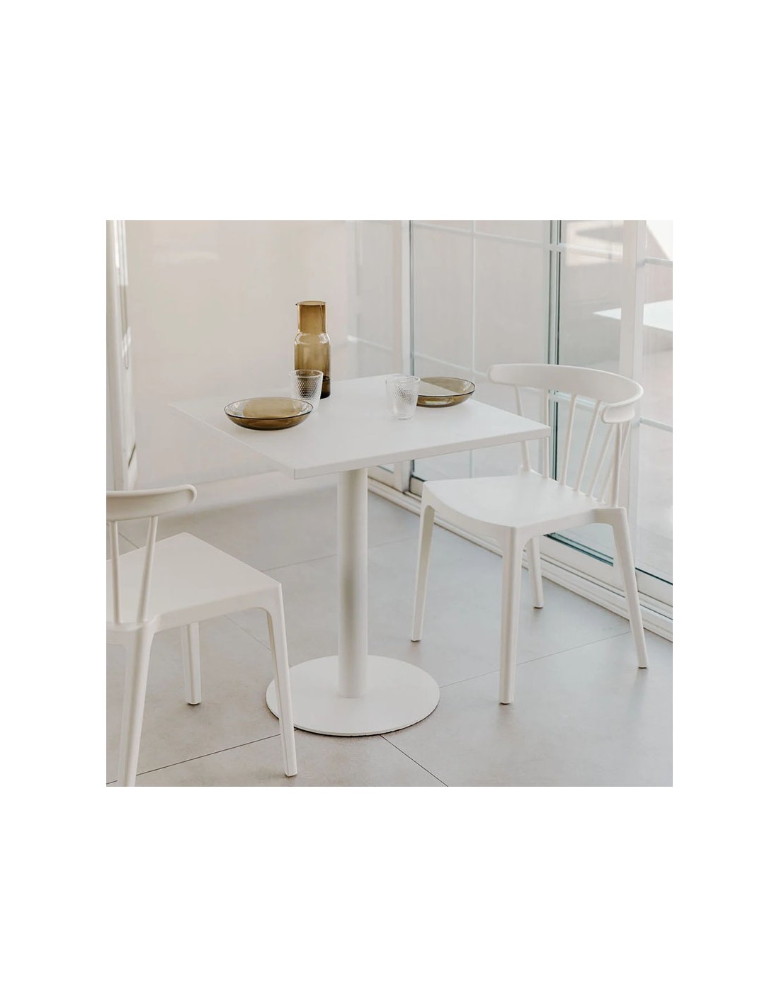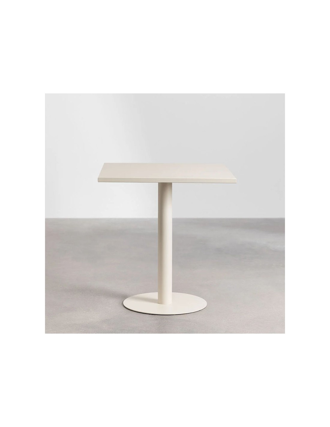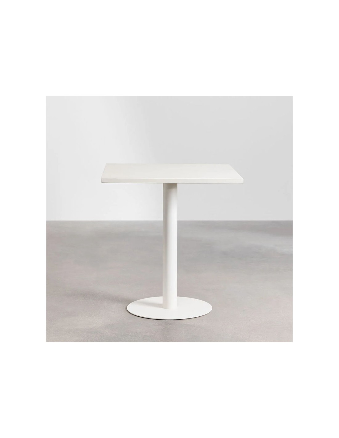 Mesa de cocina cuadrada 70x70 cm fabricada en hierro con acabado mate y pintura en polvo. Compacta, resistente y perfecta para uso interior y dos comensales.