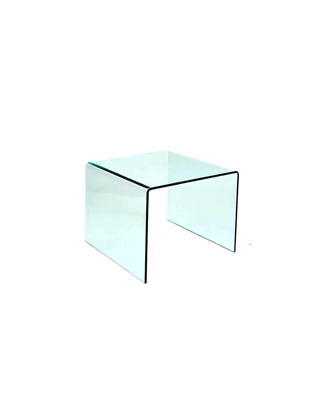 La Mesa Sune es una elegante mesa baja cuadrada de diseño contemporáneo, fabricada íntegramente en cristal curvado de 10 mm de espesor con un acabado transparente.